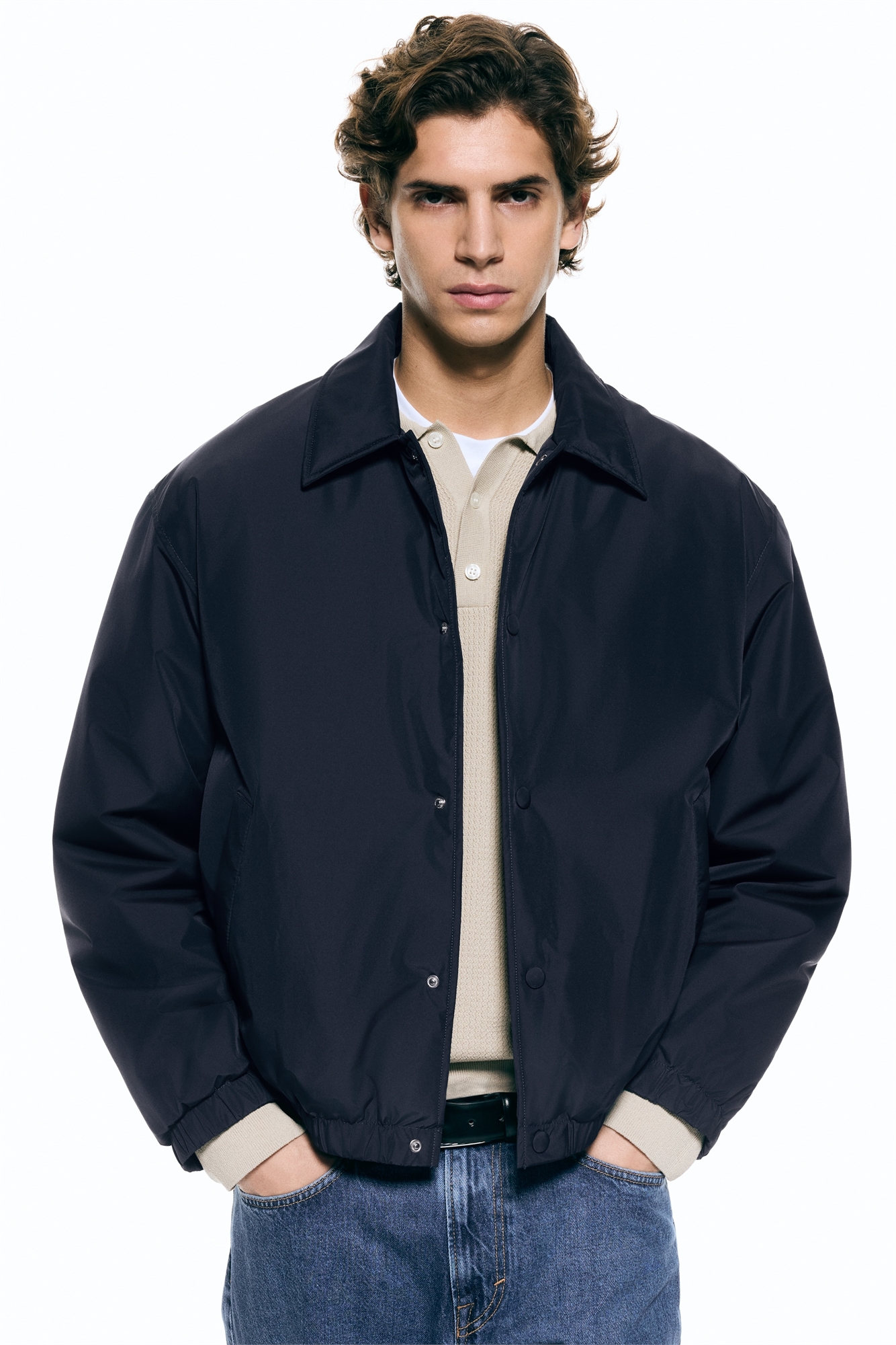 Куртка с легкой подкладкой из тканого материала с отложным воротником и кнопками спереди. Длинные рукава, втачные передние карманы и внутренний втачной карман. Эластичные манжеты и подол. Стеганая подкладка.