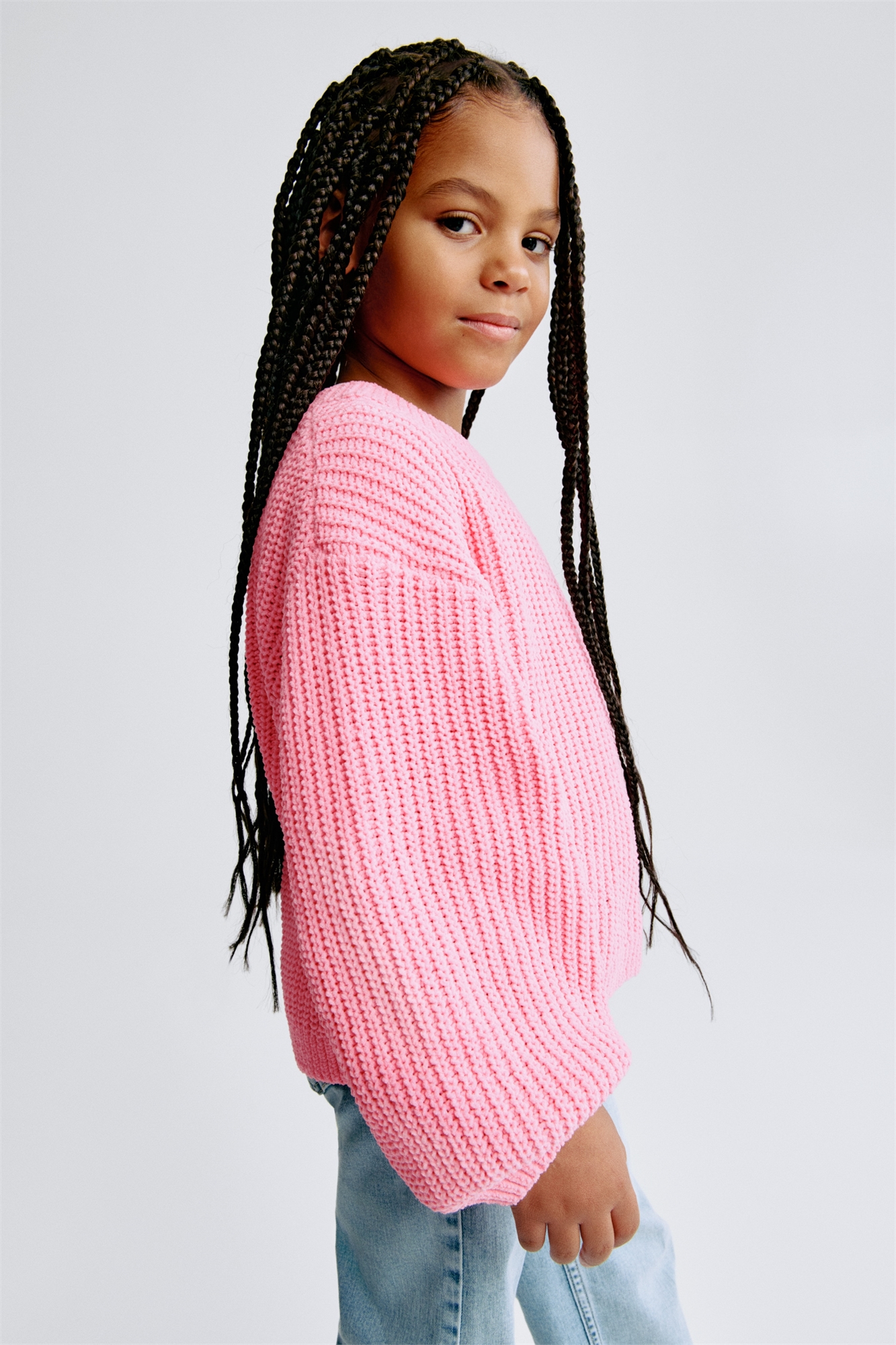Джемпер из мягкого синельного трикотажа с бархатистой гладкой поверхностью. Круглый вырез с ребристой отделкой, спущенные плечи и длинные рукава. Ребристые манжеты и подол.