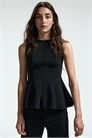 Облегающий топ без рукавов из плотного трикотажа интерлок с нежным вырезом-лодочкой, формирующими швами спереди и сзади и расклешенным пеплумом.