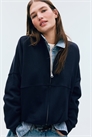 Куртка-бомбер оверсайз из легкой толстовочной ткани с ребристым воротником-стойкой и потайной застежкой-молнией спереди. Видимые швы вдоль рукавов и на талии. Ребристые манжеты и подол.