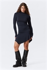 Облегающее мини-платье из эластичного лиоцеллового джерси. Асимметричный вырез горловины, длинные рукава, эластичные боковые швы и асимметричный многослойный подол.