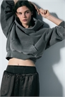 Толстовка непринужденного силуэта из мягкого хлопкового флиса. Она имеет спущенные плечи, просторный капюшон и карман-кенгуру. Манжеты и подол отделаны тесемками.