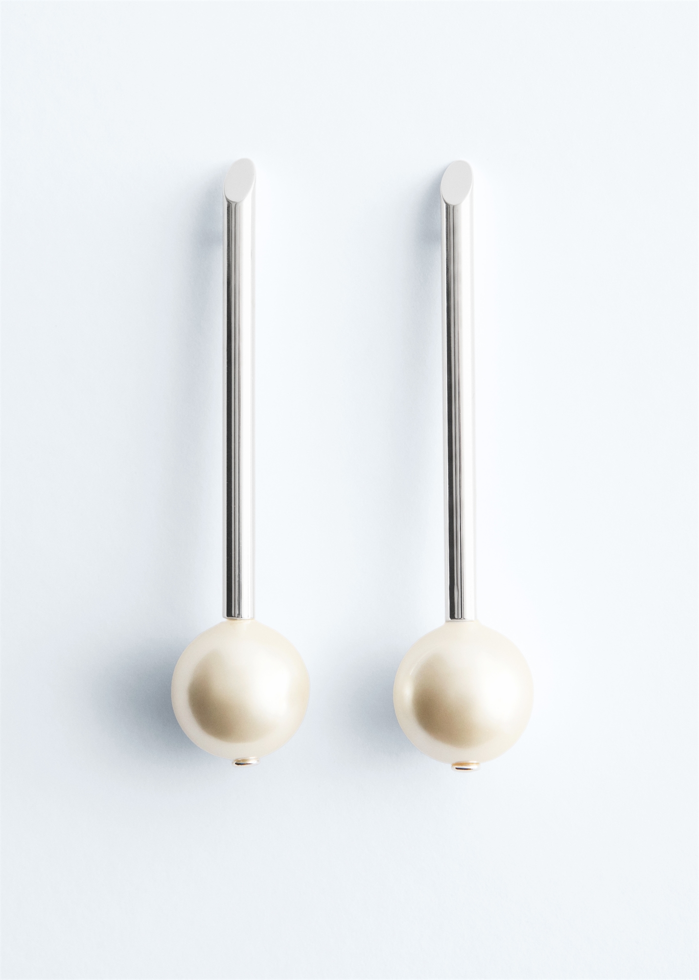 Эти серьги из длинной полированной латунной проволоки с крупной шарообразной искусственной жемчужиной в нижней части. Проверено на наличие никеля Застежки-бабочки Общая длина: 6,5 см Диаметр искусственной жемчужины: 1,5 см