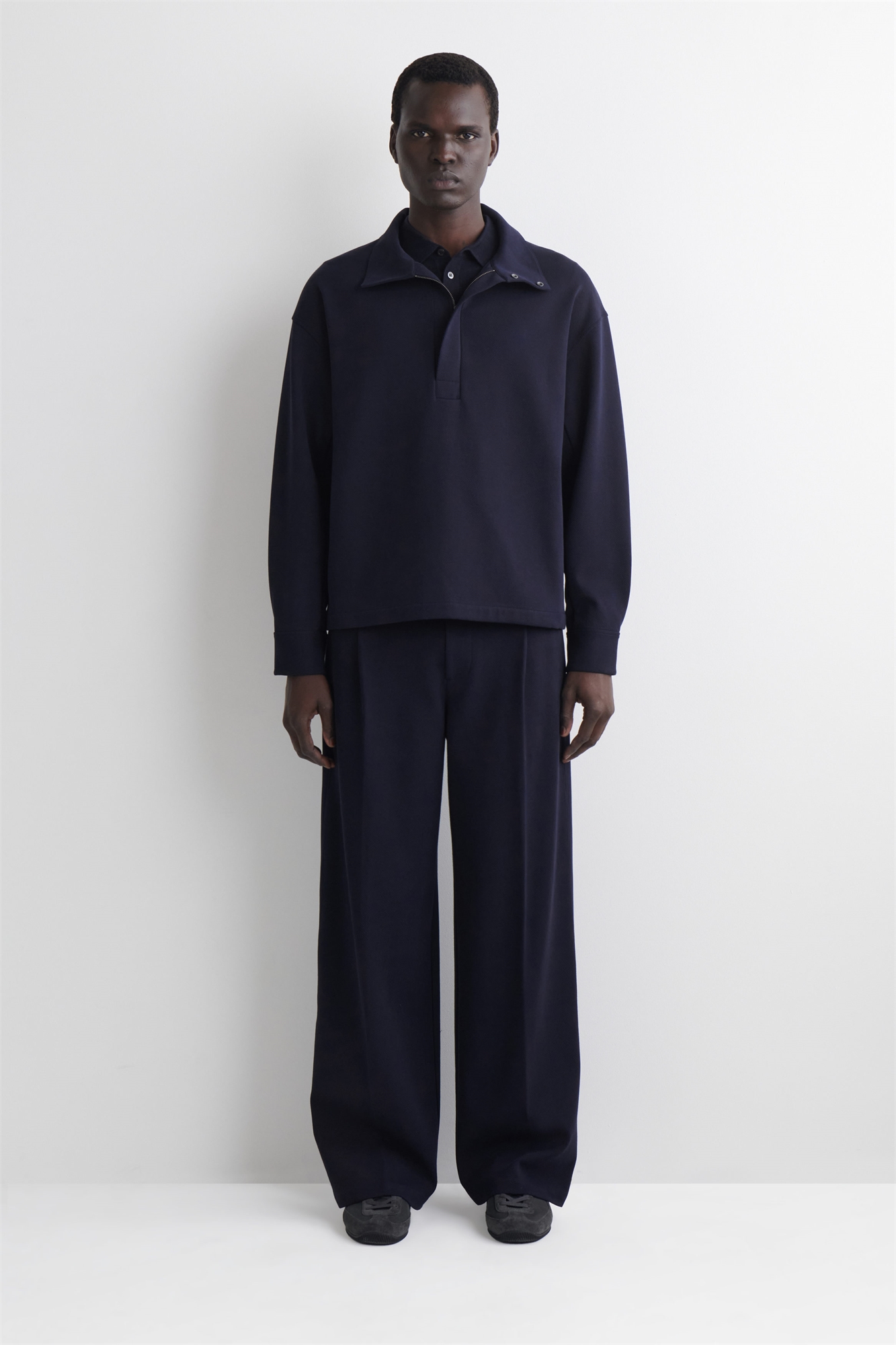 При создании этих брюк команда мужской одежды обратилась к стилю 90-х. Изготовленные из мягкого хлопка-джерси, они имеют непринужденную форму оверсайз и украшены плиссировкой, которая расслабляет широкие ноги. Внутренний шнурок позволяет регулировать посадку. Носите их с подходящим джемпером. Безразмерный кройЗастежка на крючок, планку и молнию Материал: 57% хлопка, 38% полиамида, 5% эластана. Без учета отделки / Машинная стирка Внутренняя длина ноги размера M составляет 75,7 см / Модель носит размер M