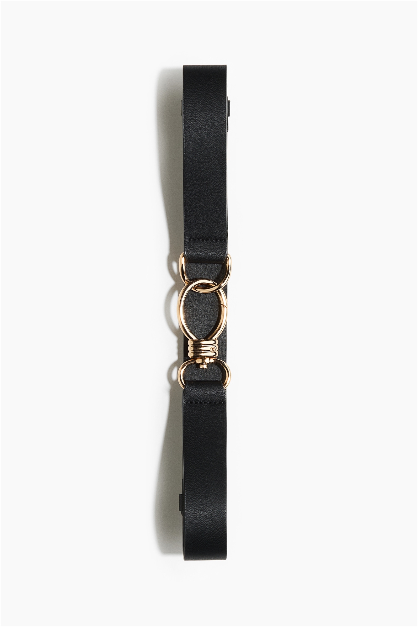 Пояс на талии из ткани с покрытием и блестящей металлической застежкой.