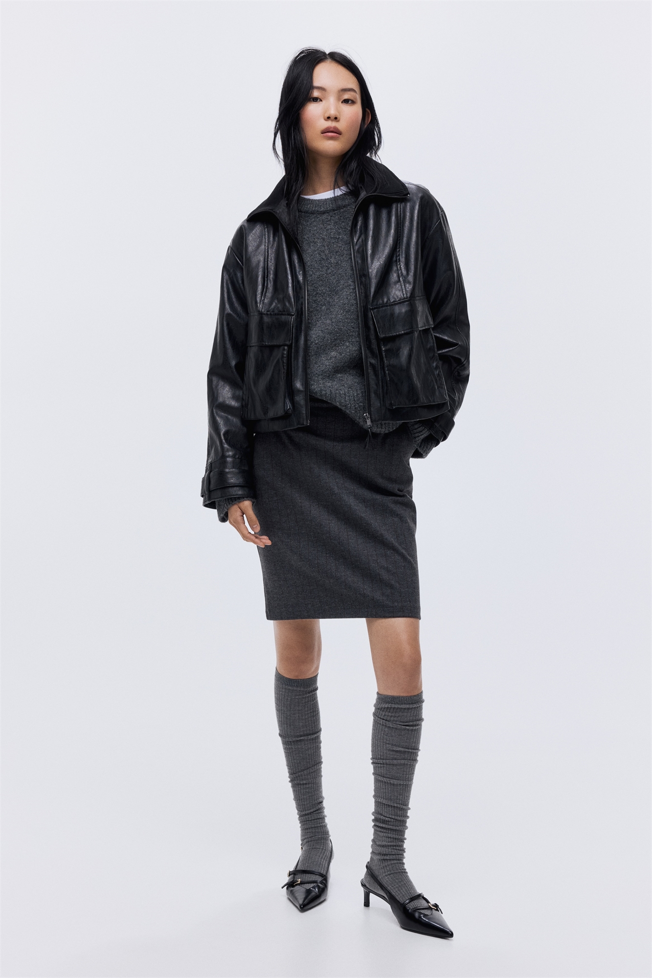 Юбка длиной до колена из плотного джерси с высокой талией, потайной застежкой на молнию сзади и диагональными боковыми карманами.