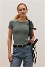 Спортивная футболка из джерси из смешанного хлопка с принтом с флокированной отделкой на груди. Приталенный крой с круглым вырезом с ребристой отделкой, короткими рукавами и прямым подолом.