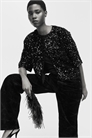 Кардиган из блестящего велюра с круглым вырезом и двумя застежками-крючками в верхней части. Спущенные плечи и короткие рукава. Подкладка из джерси.