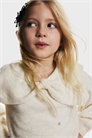 Джемпер из мягкого тонкого трикотажа, украшенный декоративными элементами. Круглый вырез, спущенные плечи и длинные объемные рукава. Ребра на манжетах и подоле.