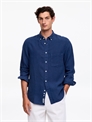 Эта рубашка, окрашенная в массе, изготовлена из льна и имеет свободный крой. Модель с воротником-стойкой, одним нагрудным карманом и закругленным низом. Манжеты на пуговицах. Пуговицы из перламутра, что означает, что данный продукт содержит нетекстильные детали животного происхождения. Этот продукт изготовлен из европейского льна, поставляемого из Западной Европы. Лен — естественно легкий и дышащий материал, он дарит ощущение прохлады и воздушности, оставаясь при этом удобным для повседневного использования и смягчаясь со временем.