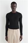 Тонкая ребристая хлопковая футболка с длинными рукавами