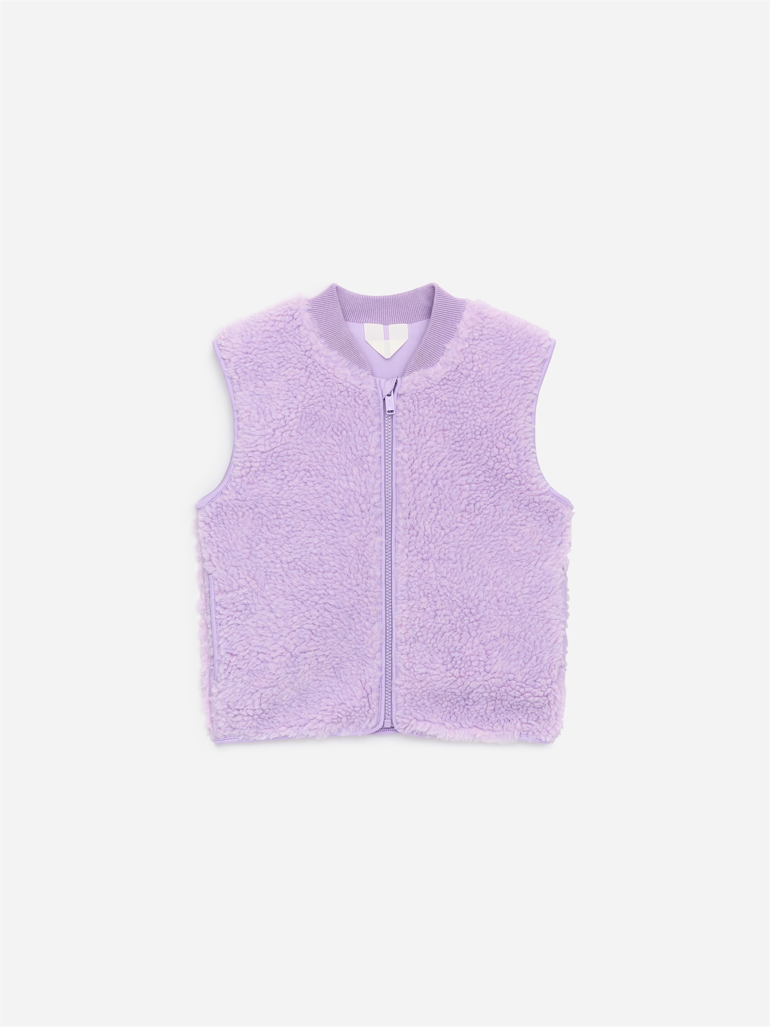 Этот жилет, идеально подходящий для многослойности, изготовлен из мягкой ворсистой ткани и имеет боковые карманы, застежку-молнию и ребристый вырез.