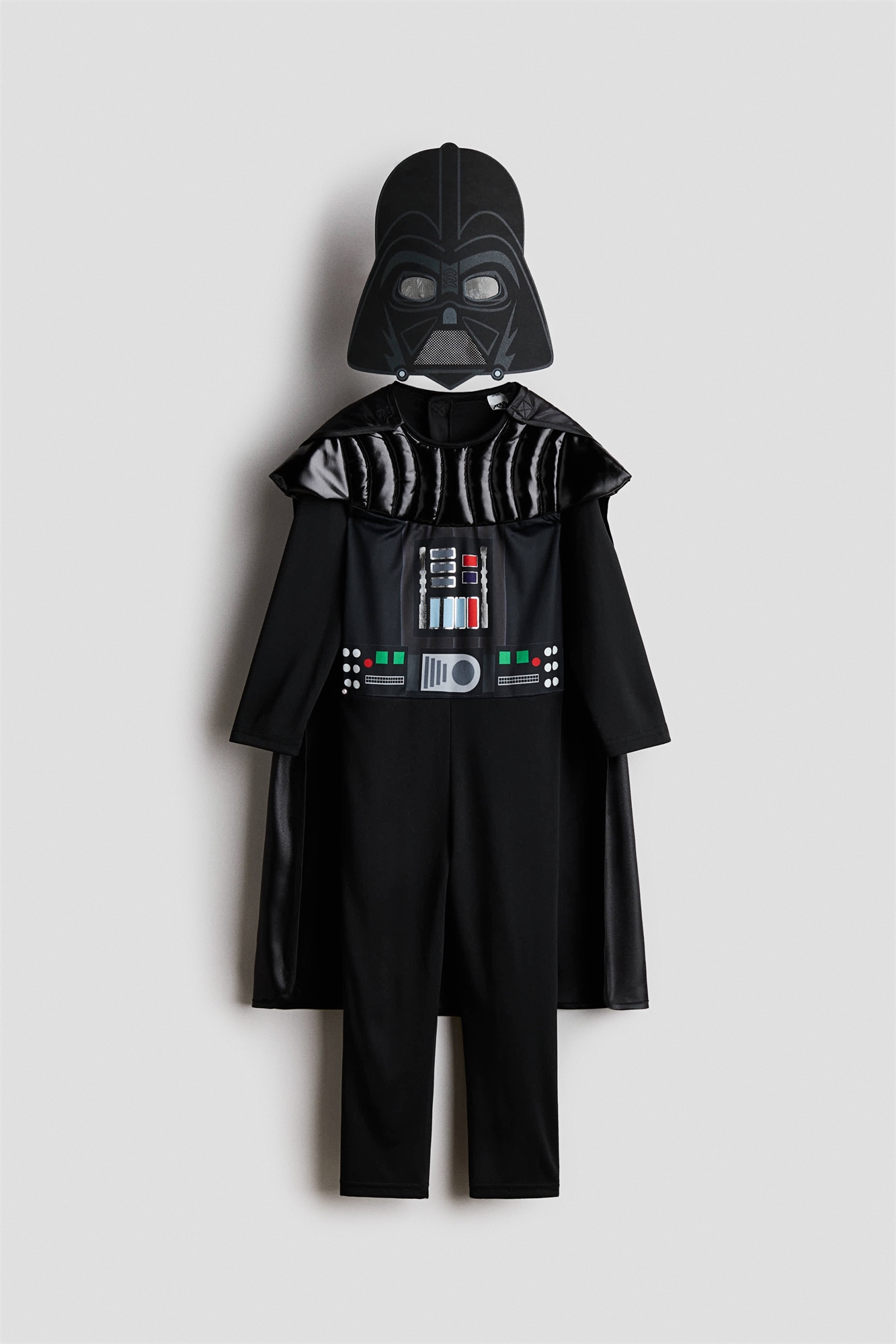 Комплект маскарадного костюма из набивного трикотажа со съемным плащом и прочной маской. Мягкие части и отверстие с застежкой на крючок и петлю сзади. Костюм создан для долгого использования и любви - заботьтесь о нем, передавайте по наследству, ремонтируйте и перерабатывайте.