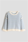 Джемпер из текстурированного хлопка с круглым вырезом, отделанным резинкой, и заниженными плечами. Резинка с волнистым краем на манжетах и по низу.