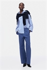 Брюки из хлопчатобумажной ткани с высокой талией, застежкой-молнией и пуговицей. Накладные боковые карманы, карманы с отворотом сзади и прямой крой.