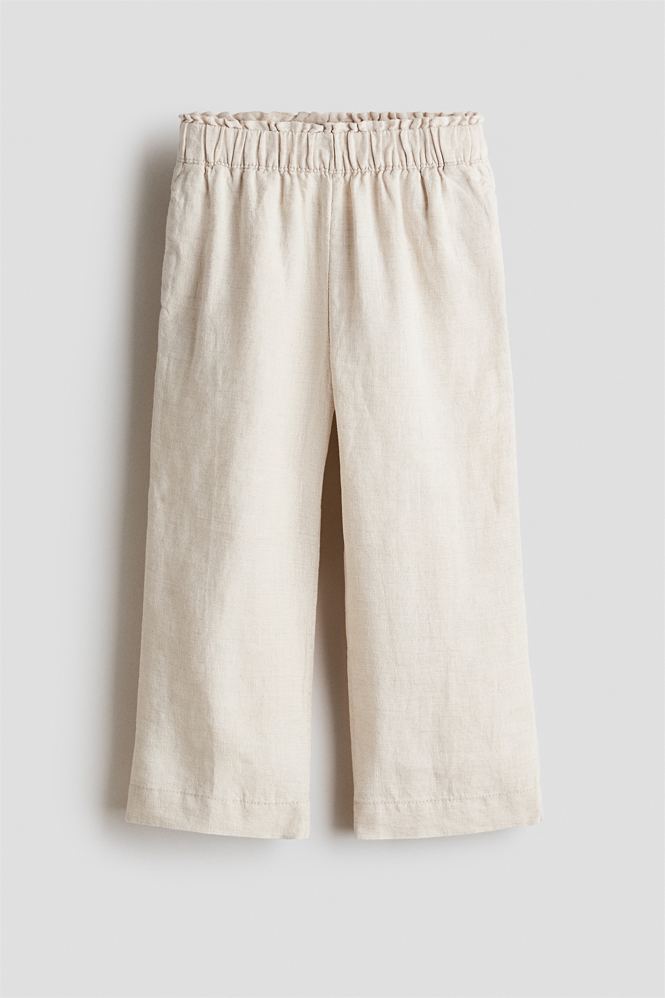 Брюки из мягкого, воздушного льна, идеально подходящие для теплых летних дней. Свободный крой в области бедер и ягодиц, прямые брючины. Регулируемая эластичная талия с небольшой оборкой и незаметными боковыми карманами. Лен — это неподвластный времени материал с легкой текстурой и быстросохнущими свойствами, который со временем становится все мягче. Коллекция H&M Adorables — это тщательно подобранный ассортимент удобных и качественных вещей, которые никогда не выйдут из моды.
