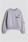 Свободный топ из толстовочной ткани с мягкой начесом внутри и принтом. Круглый вырез с ребристой отделкой, спущенные плечи и длинные рукава. Ребристые манжеты и подол.