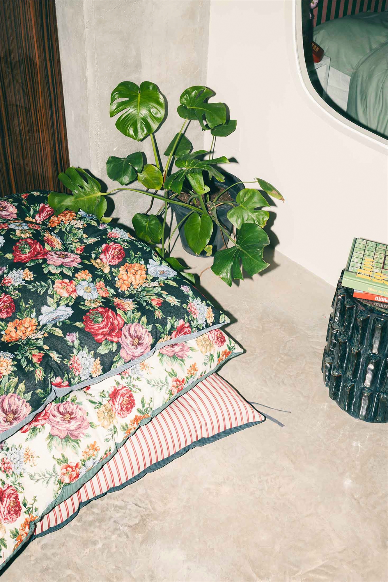 Универсальный и многофункциональный матрас. Двусторонний. С одной стороны обтянут хлопковым жаккардом, с другой - вельветом. Наполнитель - силиконизированное полое волокно. Вакуумная упаковка. Несъемный чехол. Размеры: 120 x 100 см.