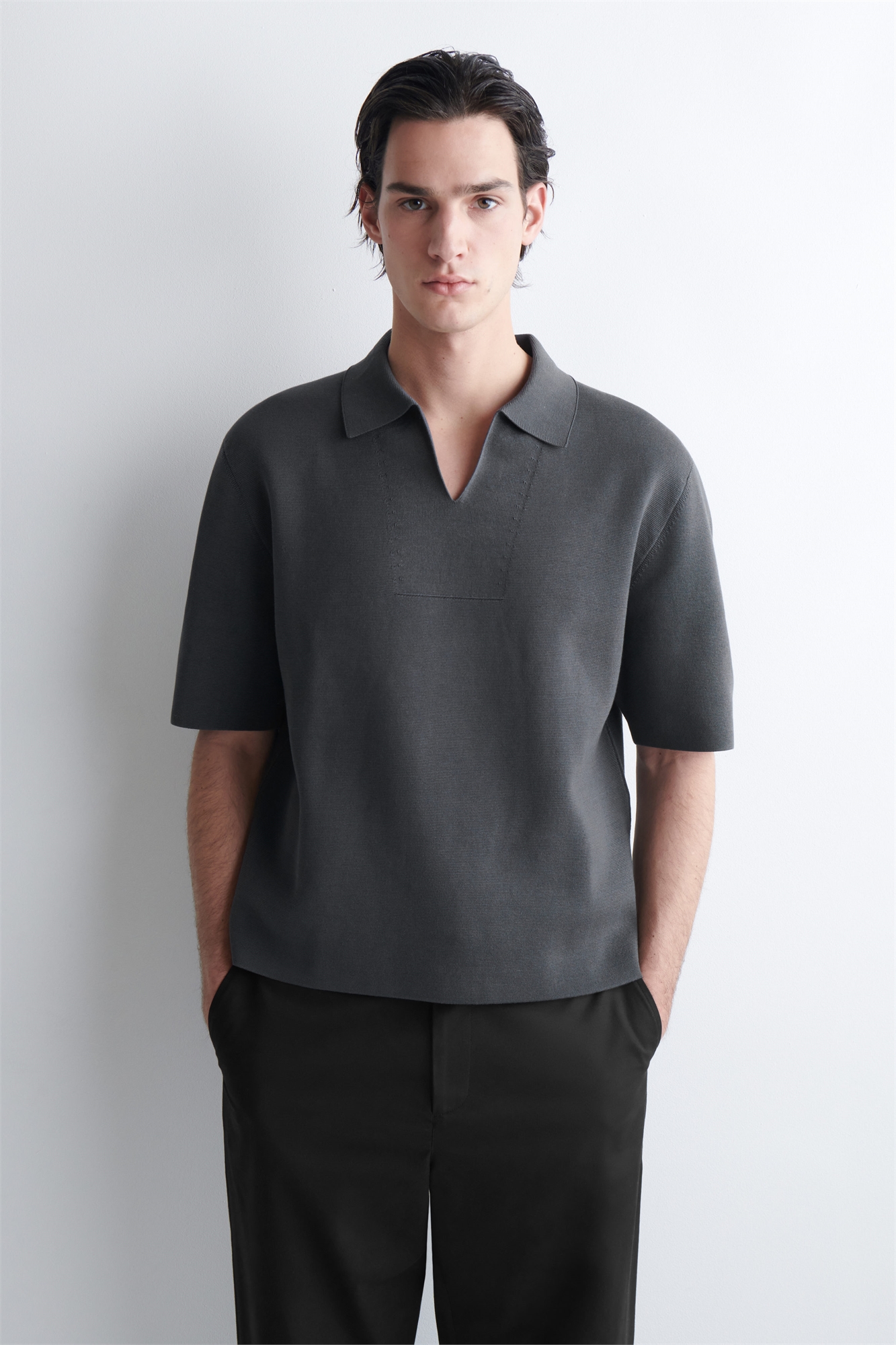 Классическая рубашка-поло — основа мужского гардероба. Эта модель, переработанная для теплого времени года, изготовлена из легкого хлопка с миланским вязанием, имеет открытый воротник и короткие рукава. Выполнена в угольно-сером цвете, который хорошо сочетается с нейтральными оттенками. Свободный крой. Машинная стирка. Длина спинки размера M — 64 см. Модель носит размер M.