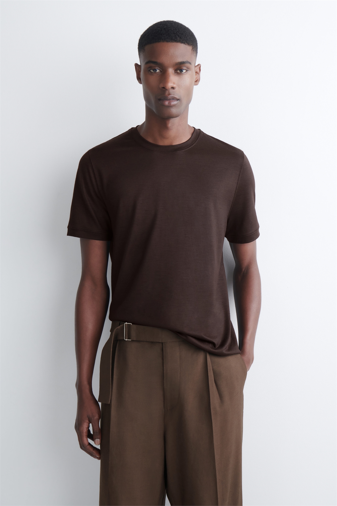 Легкие слои обеспечивают универсальность в течение всего года. Эта футболка изготовлена из тонкого трикотажа из шерсти плотностью 185 г/м² для непревзойденной мягкости и представлена в насыщенном шоколадно-коричневом оттенке, который будет хорошо сочетаться с большинством вещей в вашем гардеробе. Стандартный крой. Плотность 185 г/м². Машинная стирка. Длина спинки размера M составляет 66,3 см. Модель носит размер M.
