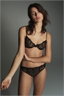 Бюстгальтер из вышитой сетки с регулируемыми бретелями и чашками на косточках, которые придают груди естественную форму и обеспечивают легкую поддержку. Застежка на крючках сзади.
