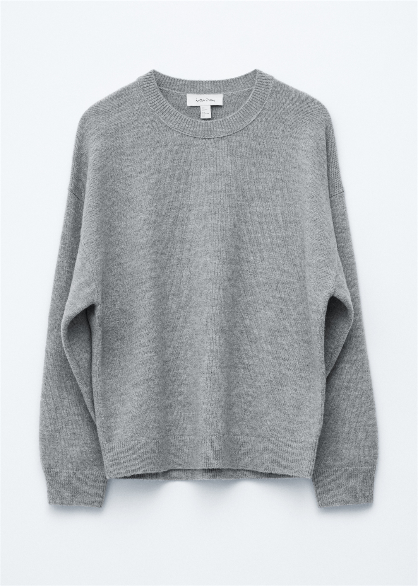 Этот джемпер из смеси шерсти и хлопка имеет завышенный силуэт, спущенные плечи и длинные рукава. Он имеет круглый вырез с ребристой отделкой, которая подчеркивается цепочным швом по всему периметру. Дизайн дополнен ребристой отделкой на рукавах и подоле, а также слегка удлиненным подолом сзади для свободного покроя. Длина джемпера: 66,5 см (размер S)