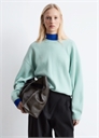 Этот джемпер из смеси шерсти и хлопка имеет завышенный силуэт, спущенные плечи и длинные рукава. Он имеет круглый вырез с ребристой отделкой, которая подчеркивается цепочным швом по всему периметру. Дизайн дополнен ребристой отделкой на рукавах и подоле, а также слегка удлиненным подолом сзади для свободного покроя. Длина джемпера: 66,5 см (размер S)