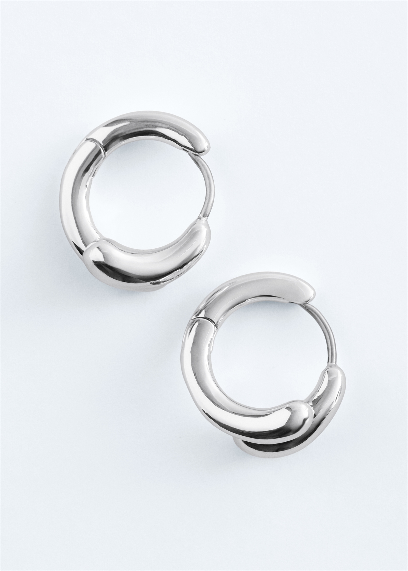 Серьги изготовлены из полированной латуни и представляют собой двухчастный дизайн с центральным желобком, где перекрывающиеся двойные обручи переходят в асимметричные каплевидные формы. Проверено никелем Застежка-петля для легкого надевания и снятия Диаметр: 1,5 см / 0,6”