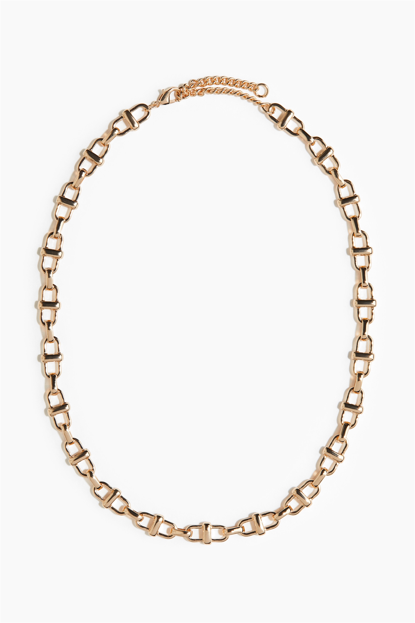 Ожерелье из металлической цепочки регулируемой длины с застежкой-триггером.