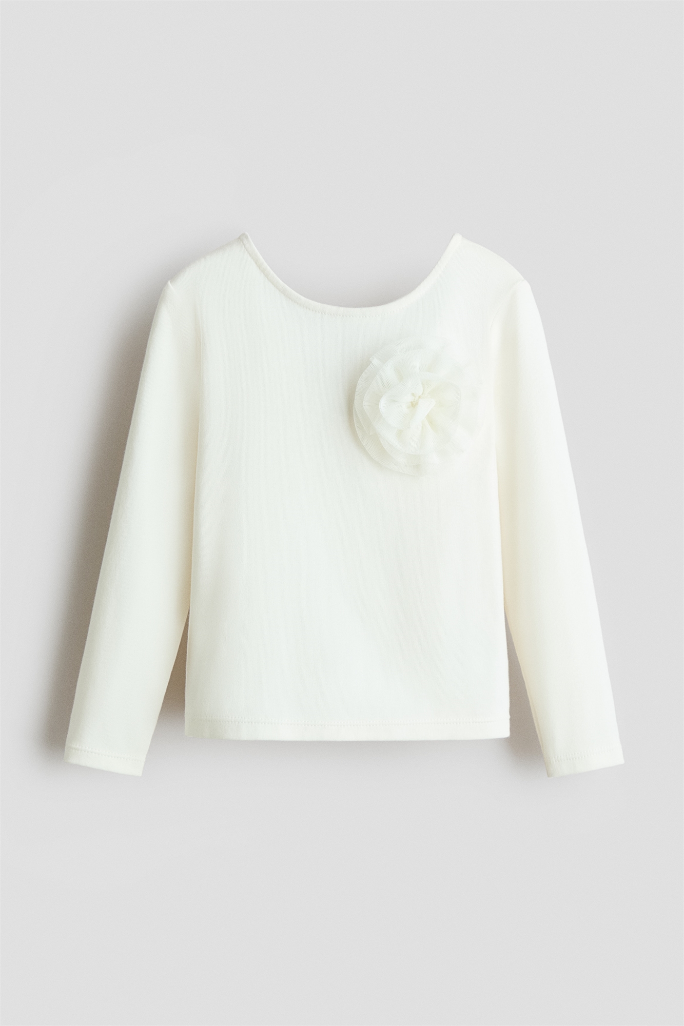 Топ с длинными рукавами из мягкого хлопкового джерси с тюлевой аппликацией спереди и круглым вырезом сзади.