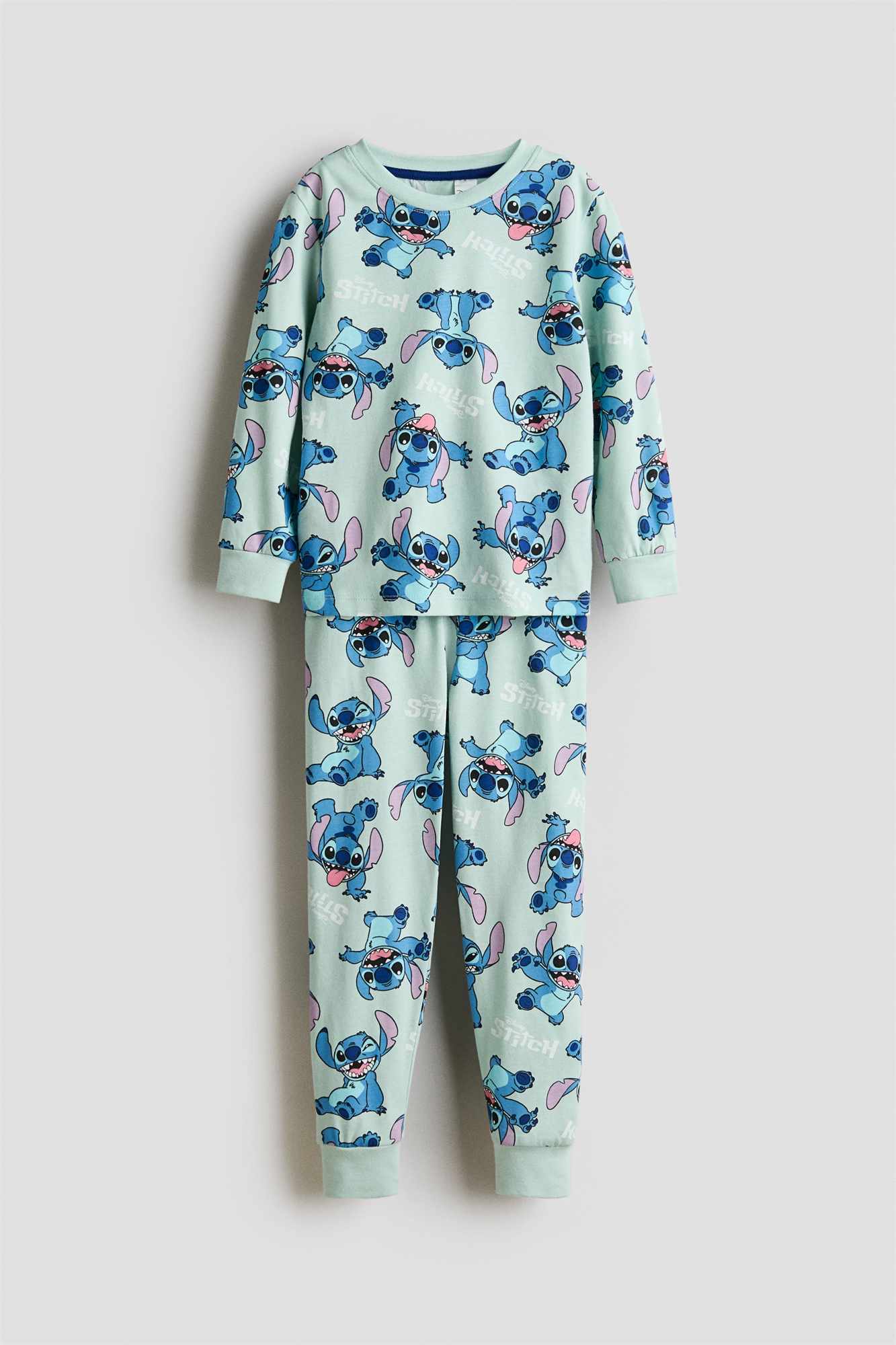 Пижама из мягкого хлопкового джерси с набивным рисунком. Верхняя часть с длинными рукавами, круглым вырезом с ребристой отделкой и манжетами в рубчик. Нижние штанишки с эластичной резинкой на талии и окантовкой по краям.