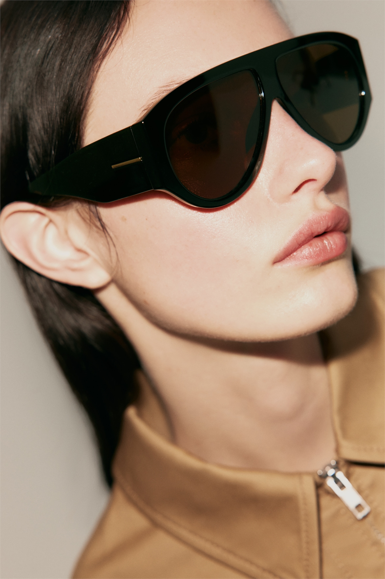 Солнцезащитные очки в стиле «авиатор» из пластика с поляризованными линзами, защищающими от ультрафиолета. Широкие боковые части с металлическими деталями золотистого цвета добавляют элегантности. Поляризованные линзы передают цвета более четко и обеспечивают более сильный контраст, предотвращая блики.