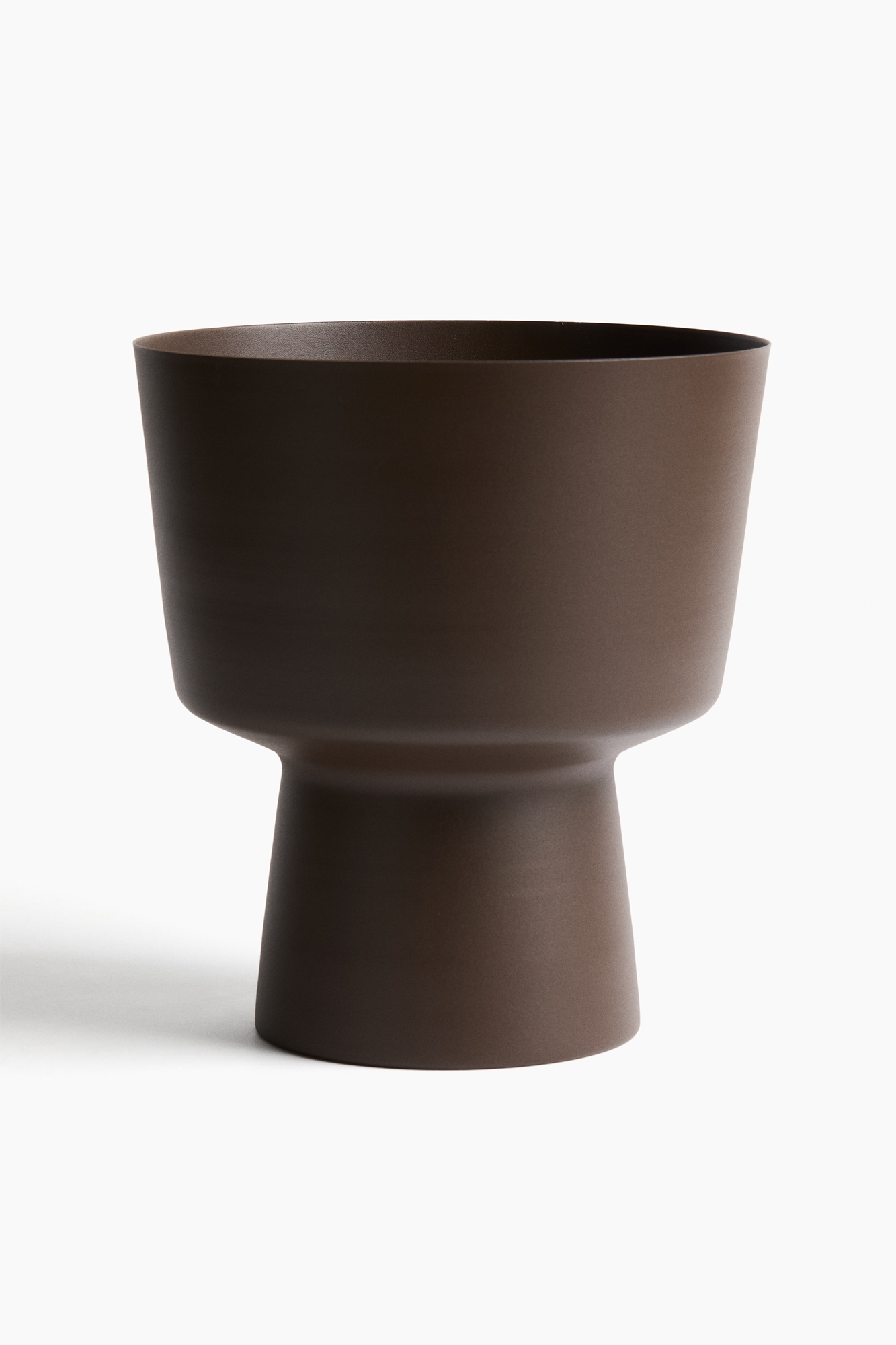 Большой цветочный горшок из окрашенного металла с дренажным отверстием в дне. Подходит как для использования в помещении, так и на открытом воздухе.