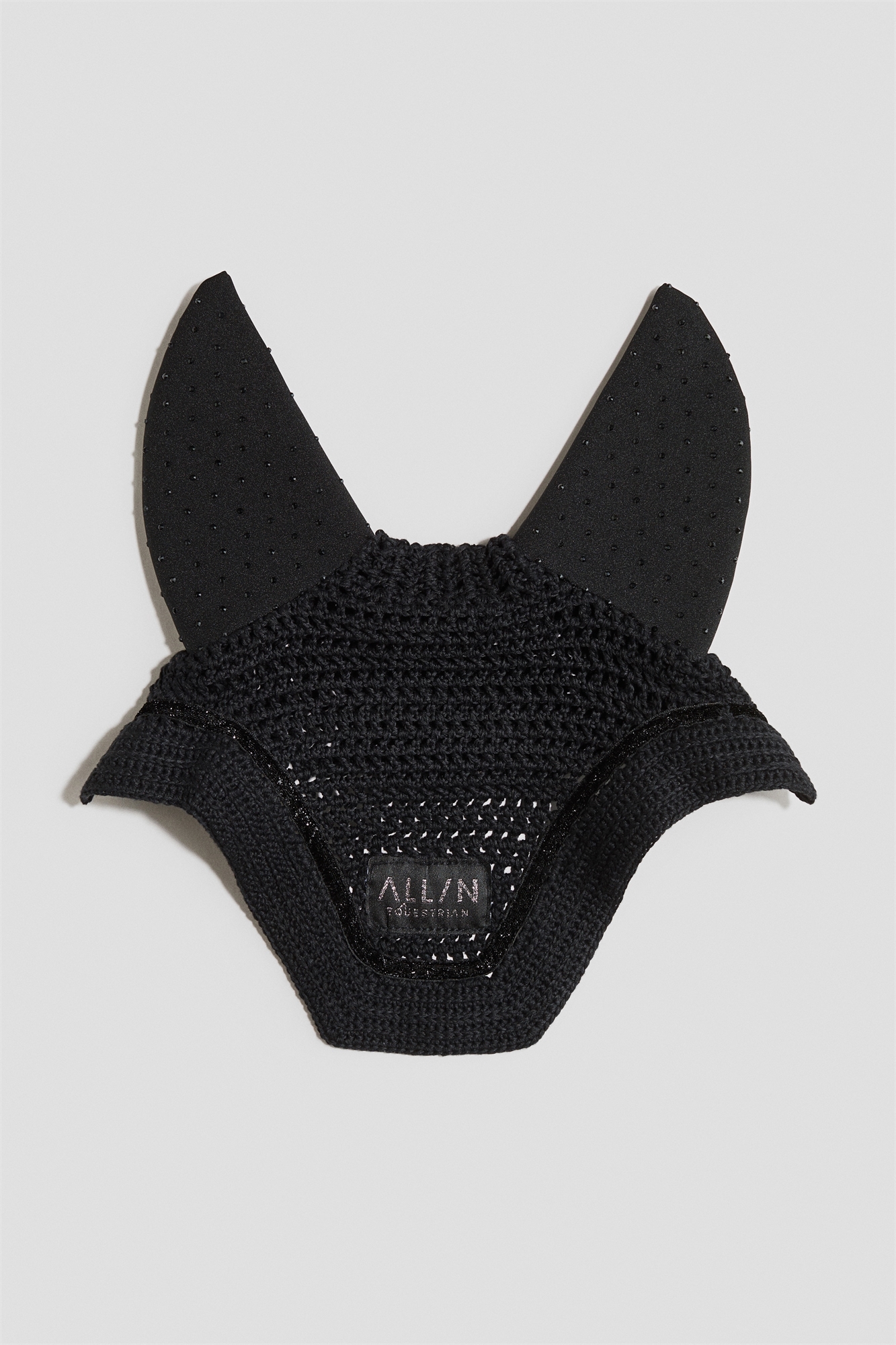Вязаная, украшенная бисером длинная мухоловка с декоративными деталями и надежным креплением для носовой повязки. Предназначена для защиты ушей лошади от насекомых, суровой погоды и отвлекающих шумов.