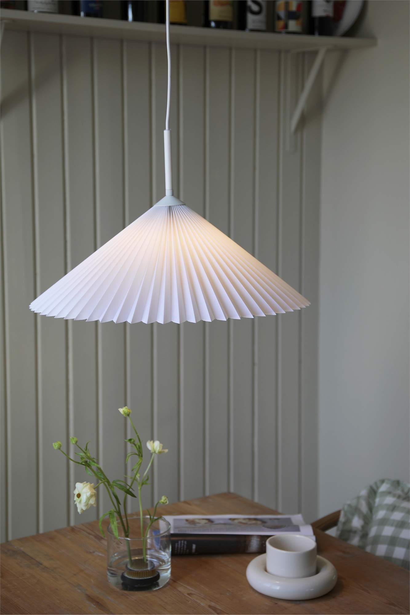 Белый потолочный светильник с плиссированным абажуром, создающим мягкий и элегантный образ. Потолочная чаша из белого металла и белый шнур. Для светильника требуется источник света E27, макс. 40 Вт или эквивалентная светодиодная лампа (не входит в комплект). Подвешивается с помощью крючка. Размер лампы: 50 см в ширину, 50 см в глубину, 30 см в высоту.