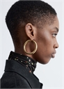 Серьги-обручи изготовлены из латуни, отполированной до блеска. Проверено никелем Застежка-защелка Диаметр: 7,2 см / 2,8”