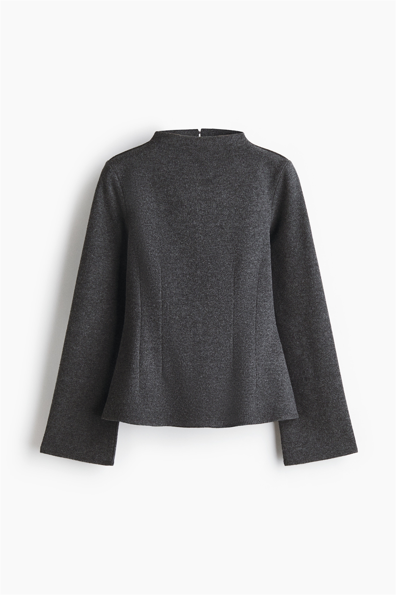 Облегающий топ с длинными рукавами из тонкого матового трикотажа с черепаховой горловиной, прорезью для ключа и пуговицами на спине. Вытачки на талии придают силуэту облегающий вид.