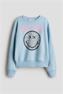 Топ оверсайз из легкой толстовки с принтом и мягким начесом внутри. Круглый вырез с ребристой отделкой, спущенные плечи и длинные рукава. Ребристые манжеты и подол.