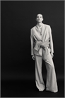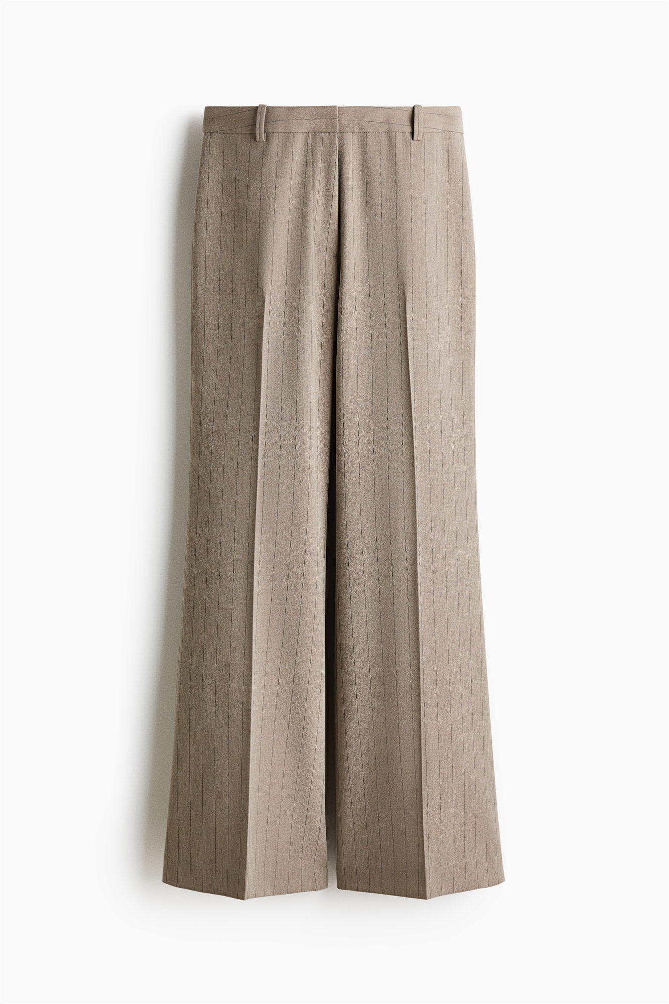 Брюки из тканого материала с ширинкой на молнии, потайной пуговицей и застежкой на крючок и планку. Поддельные втачные карманы сзади и расклешенные ноги со складками спереди и сзади.