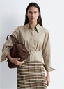 Эта короткая рубашка имеет заостренный отложной воротник, пуговичную застежку спереди и длинные рукава с застегивающимися манжетами. Приталенный крой с складками дополняет дизайн. Нормальный крой. Длина рубашки: 46,8 см (размер S).