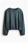 Куртка оверсайз из плотного джерси с круглым вырезом, застежкой-молнией спереди и втачными боковыми карманами. Спущенные плечи, длинные рукава и узкие эластичные манжеты и подол. Без подкладки.