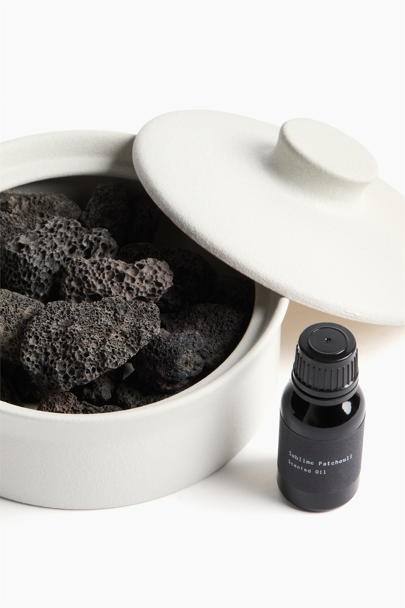 Набор диффузоров включает в себя керамогранитный горшок с крышкой, наполненный лавовыми камнями, и небольшой флакон с ароматическим маслом. Добавьте несколько капель масла на лавовые камни, чтобы придать атмосферу вашему дому. Объем ароматического масла 15 мл. Заправляемые масла можно приобрести отдельно.