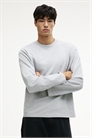 Топ с длинными рукавами из плотного джерси с круглым вырезом в рубчик, спущенными плечами и прямым кроем подола. Покрой "оверсайз" для придания мешковатого, свободного силуэта.
