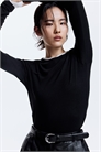 Приталенный топ в рубчик из смеси шерсти и вискозы с круглым вырезом и длинными рукавами.