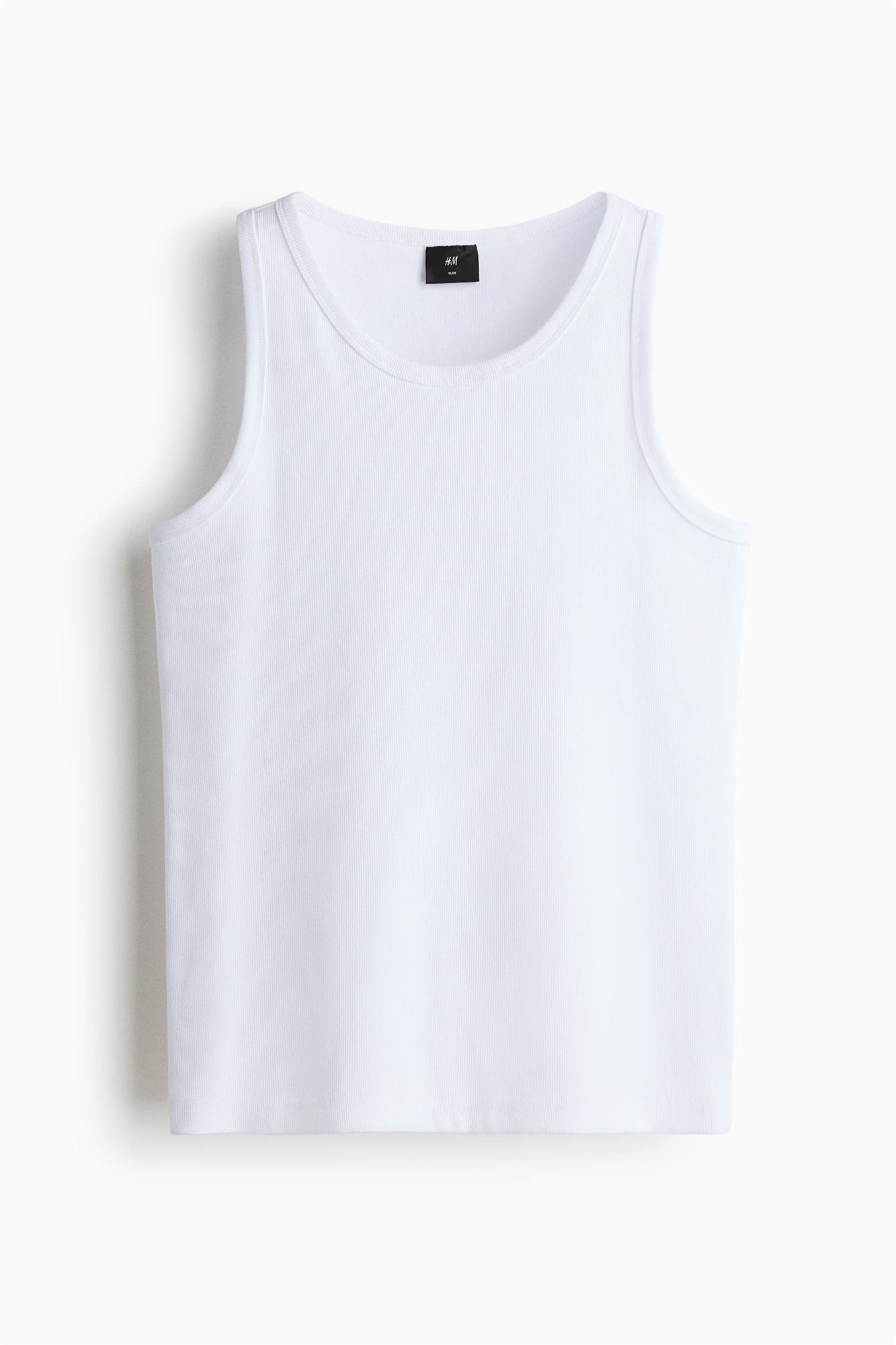 Жилет-топ из легкого ребристого трикотажа из смеси хлопка с прямым кроем подола. Зауженный крой, облегающий контуры тела и создающий приталенный силуэт.