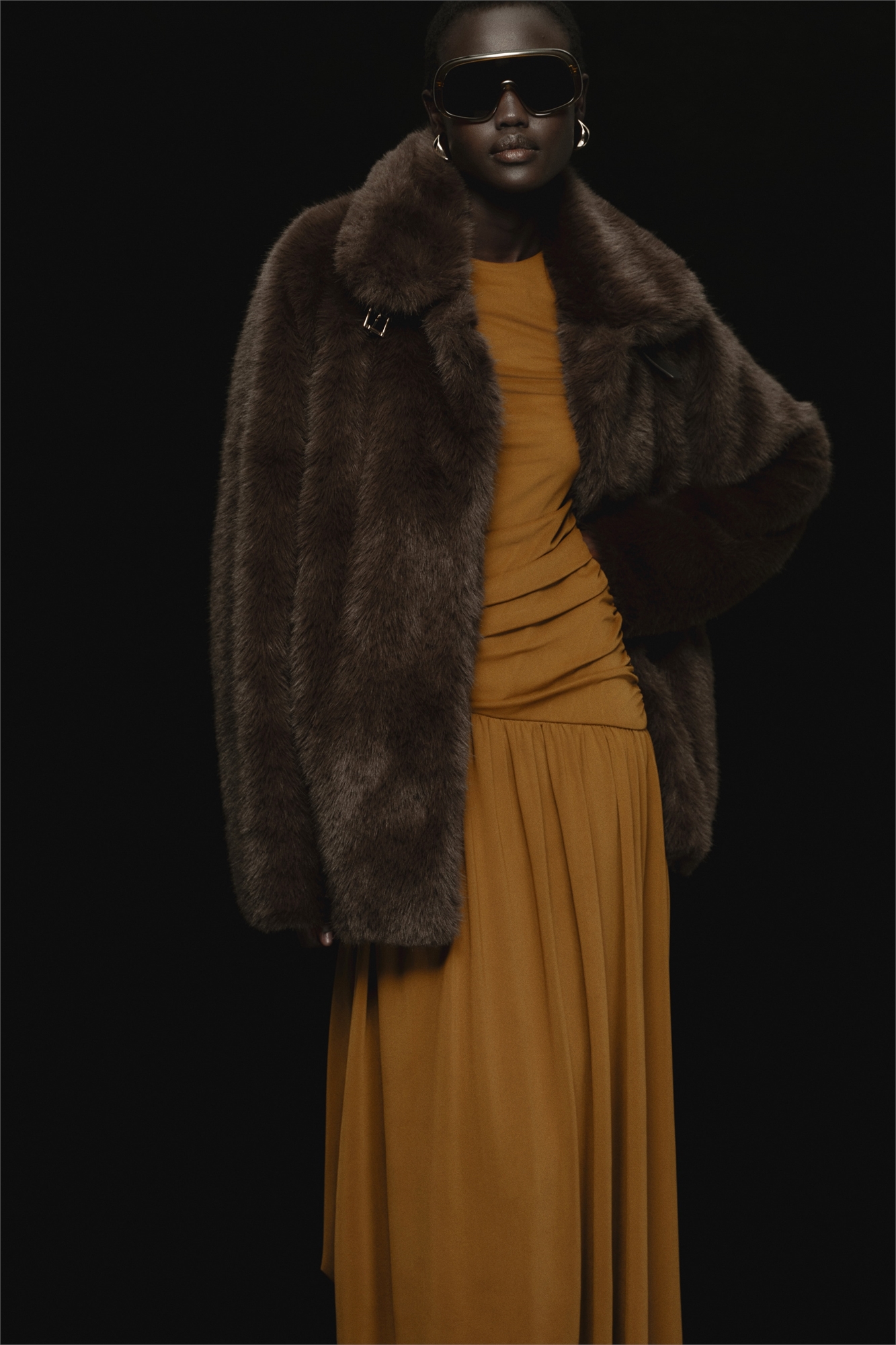 Куртка из мягкой пушистой ткани с воротником-стойкой и регулируемой планкой с квадратной металлической пряжкой. Скрытые кнопки спереди, незаметные боковые карманы и рукава реглан. На подкладке.