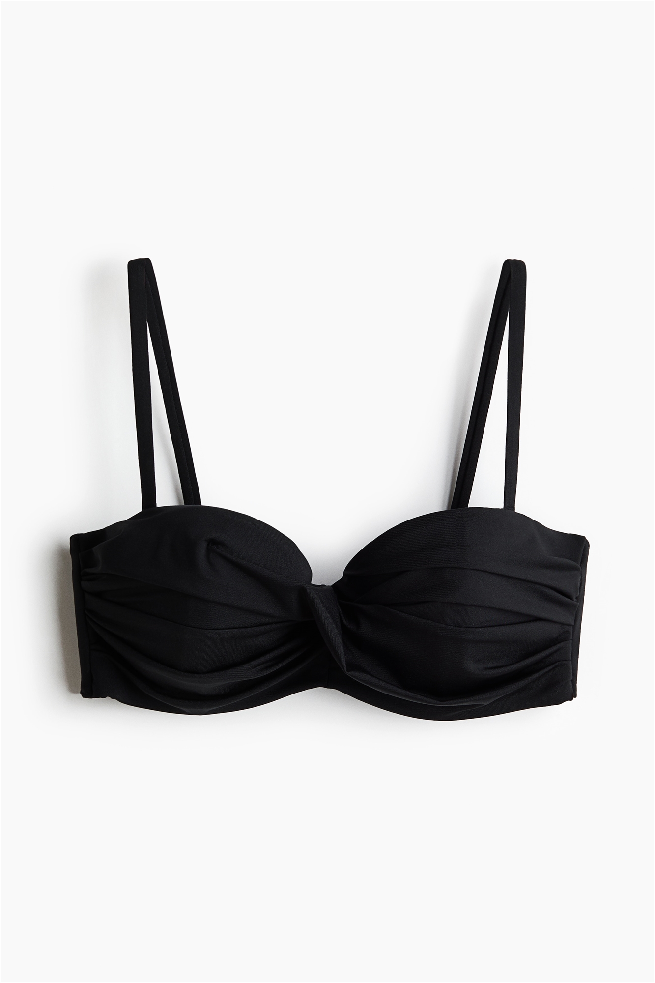 Бюстгальтер-балкончик с подкладкой, косточками и мягкими чашками, которые приподнимают и формируют грудь. Складки по бокам и скрученный дизайн в центре груди. Съемные регулируемые бретели, боковая поддержка, скрытая силиконовая окантовка и регулируемая застежка на крючках сзади.
