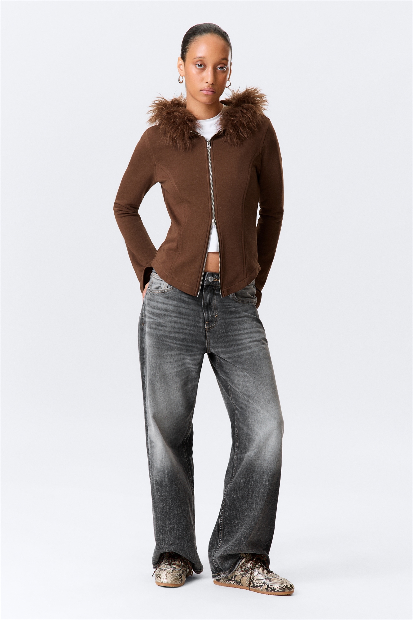 Приталенная толстовка на молнии с отделкой из искусственного меха