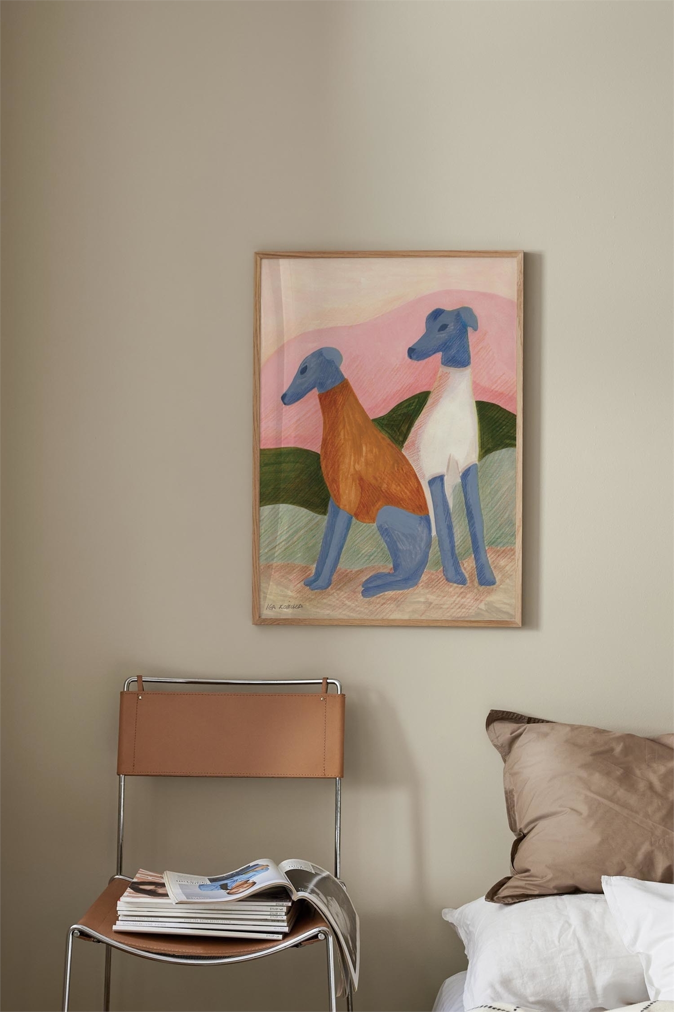 Простая, но поразительная интерьерная сцена с деревянным стулом, залитым холодным голубым светом. Контраст между геометрическими формами и органическими текстурами придает картине спокойную, почти сюрреалистическую атмосферу.