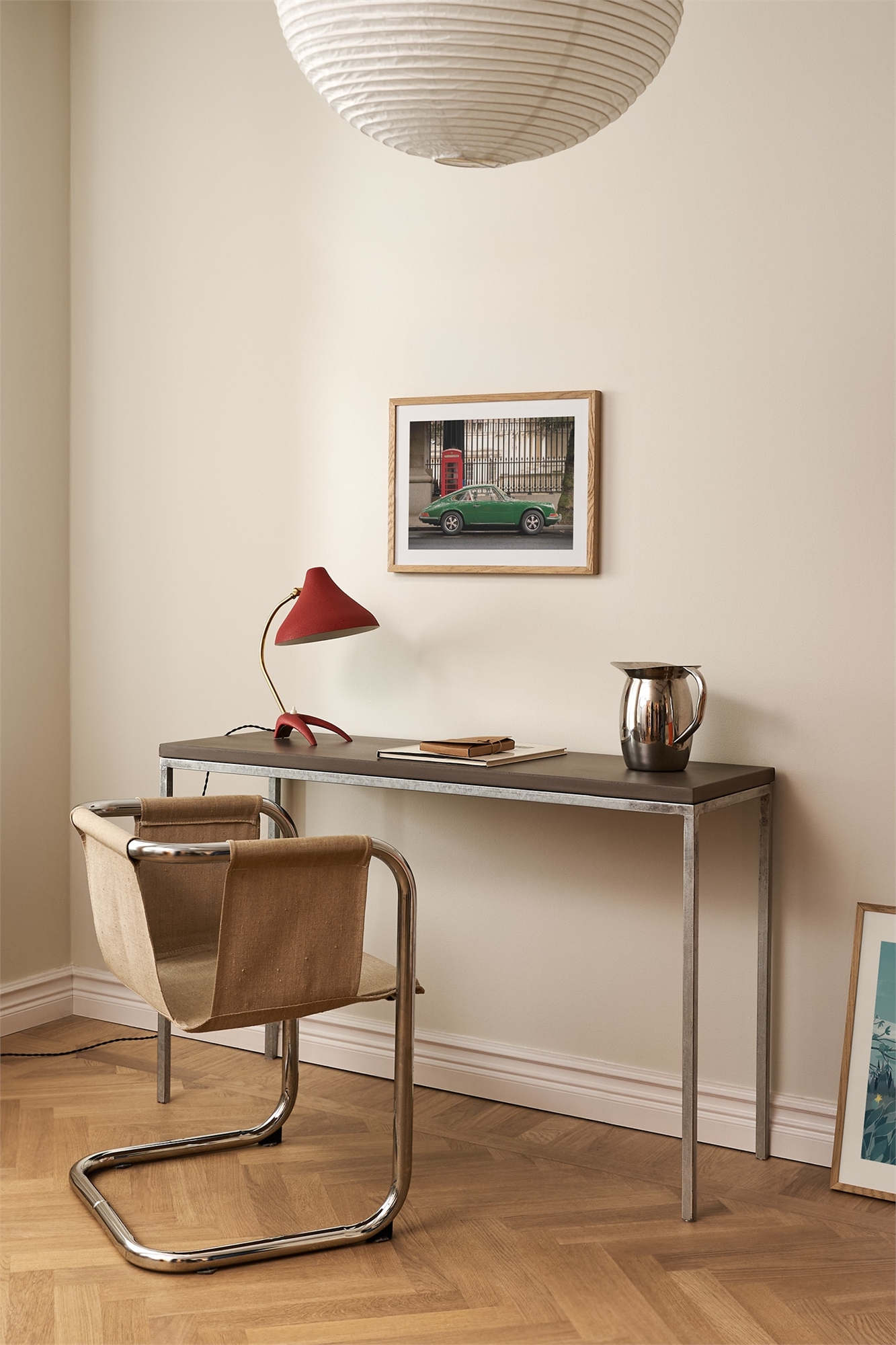 Винтажный Porsche, припаркованный на одной из лондонских улиц, - классический немецкий символ на фоне ярко-красной британской телефонной будки. Обрамление белой рамкой придает спокойной симметрии структуру.